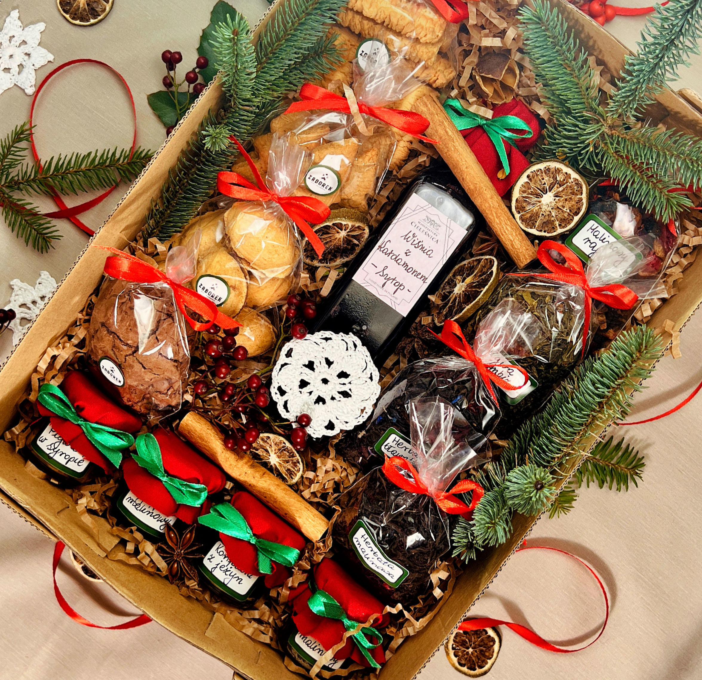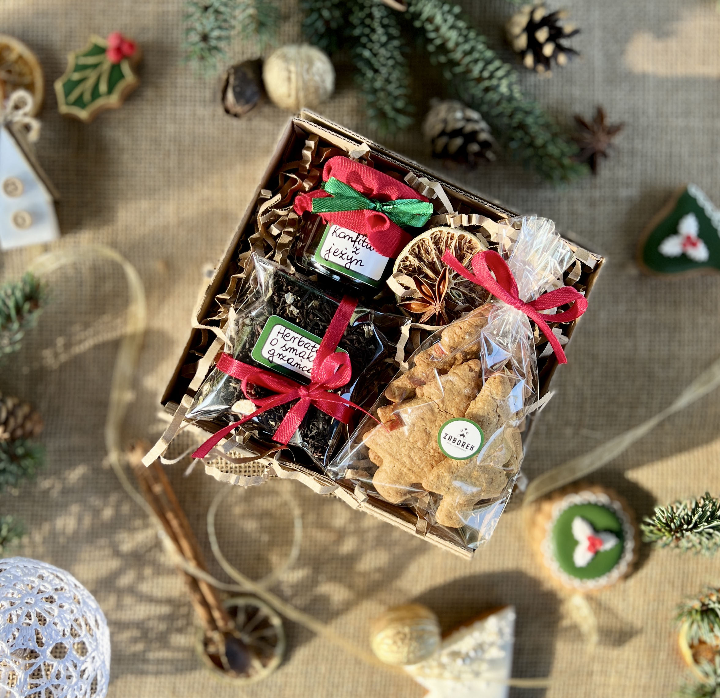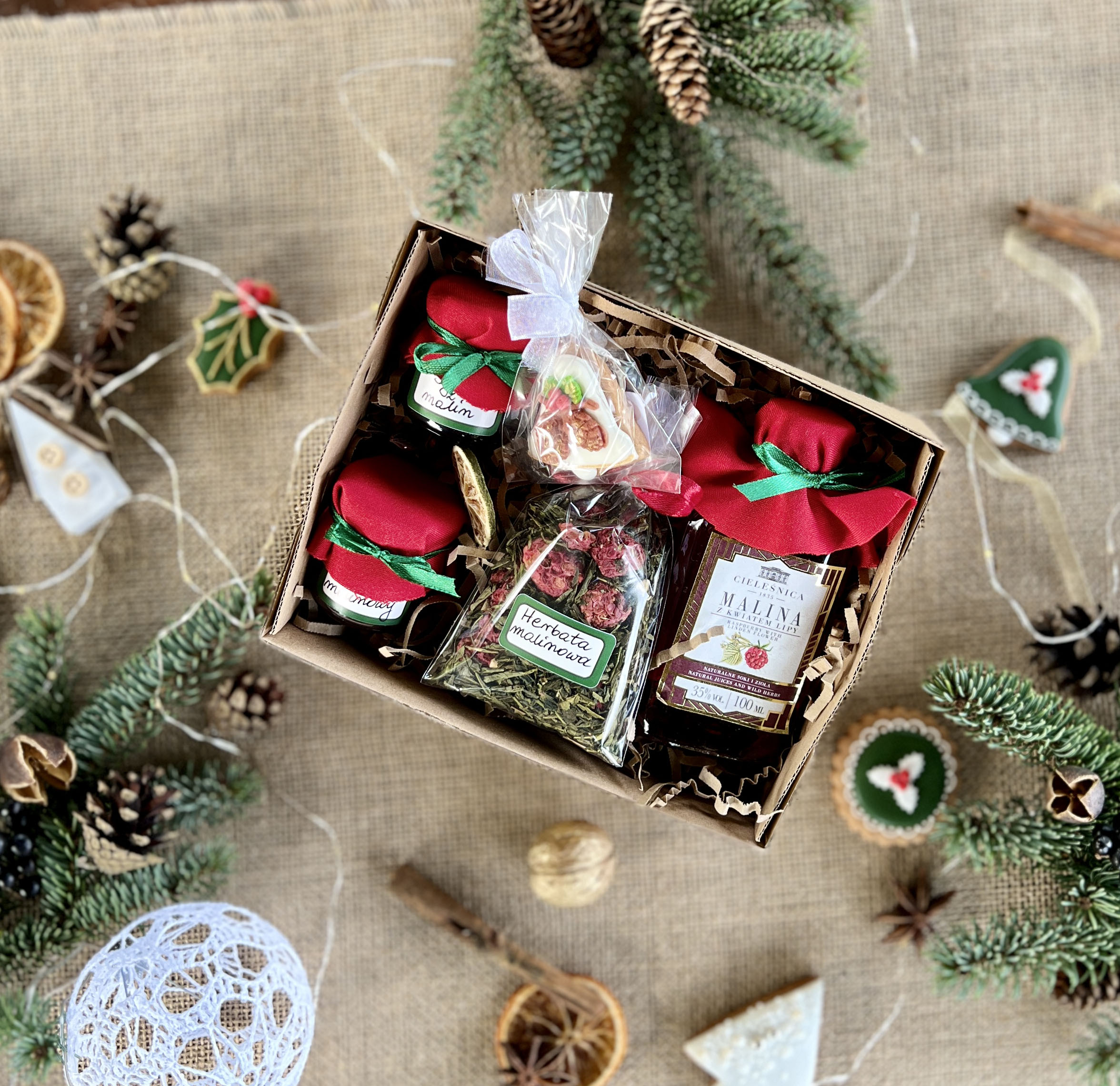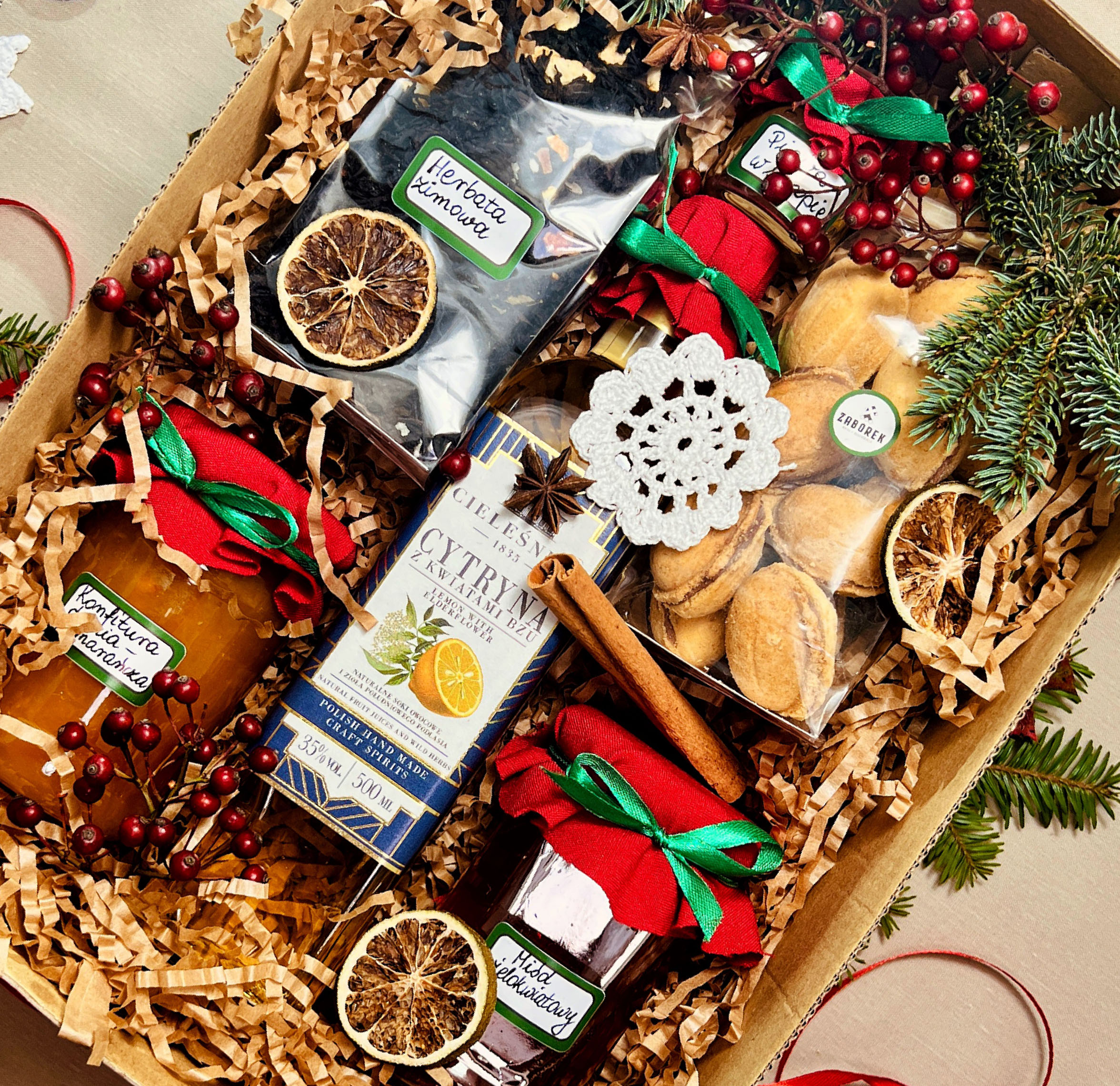 Domowe wypieki, aromatyczne herbaty, pyszne konfitury, lokalne nalewki i alkohole w eleganckich zestawach.